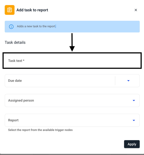 You can enter the title of the task in the Task text field. To do this, click in the Task text field.