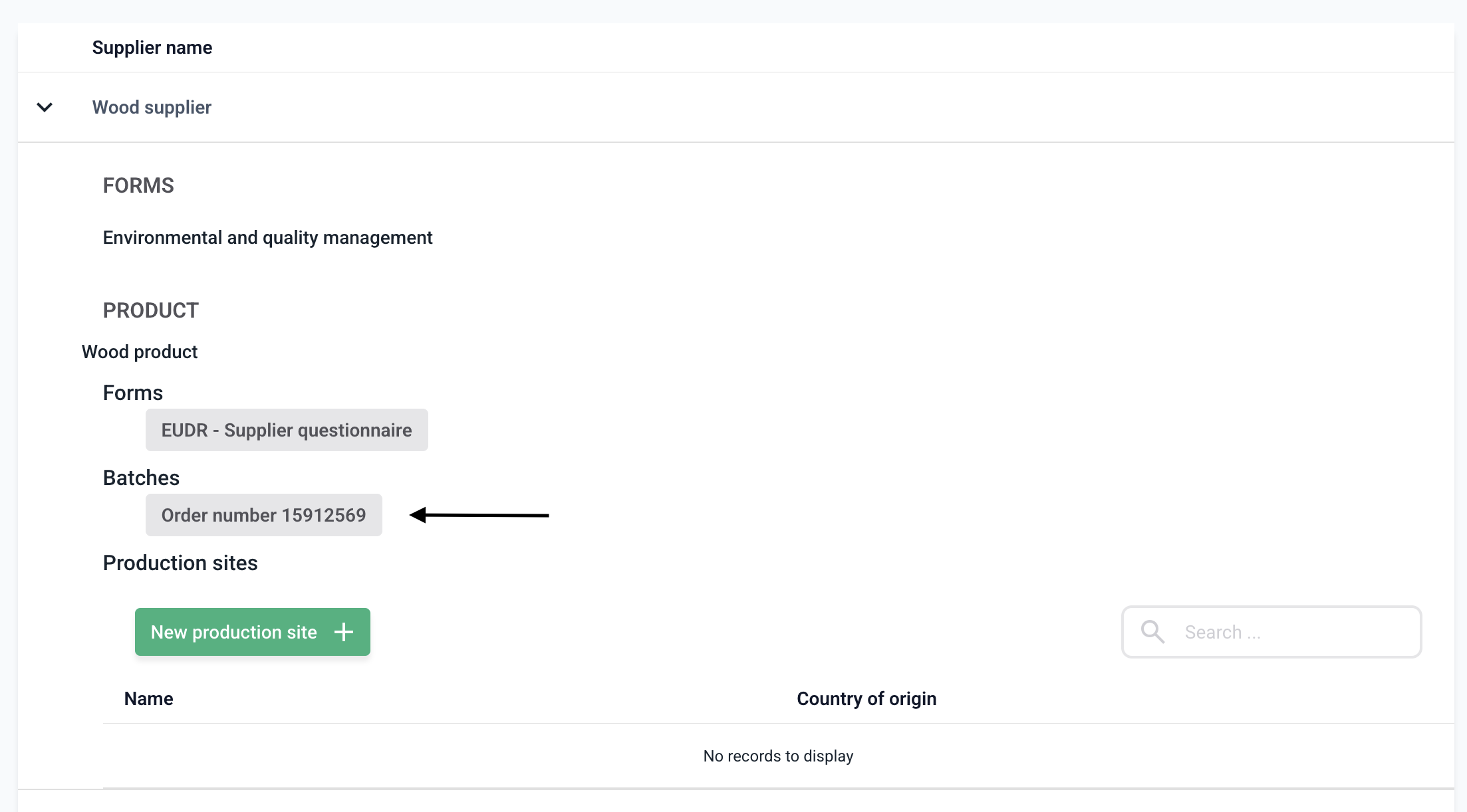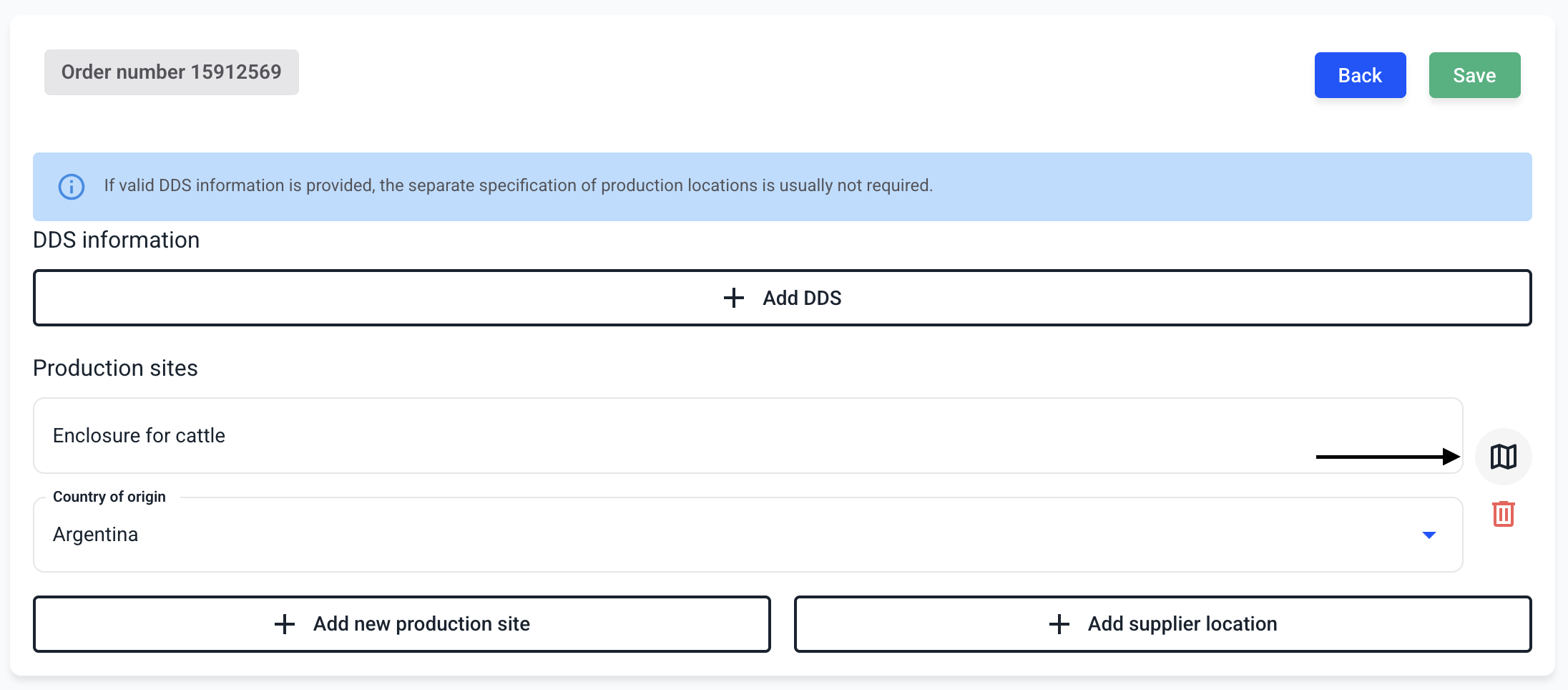 When creating a new production site, specify the location where the EUDR-relevant product was extracted or produced.