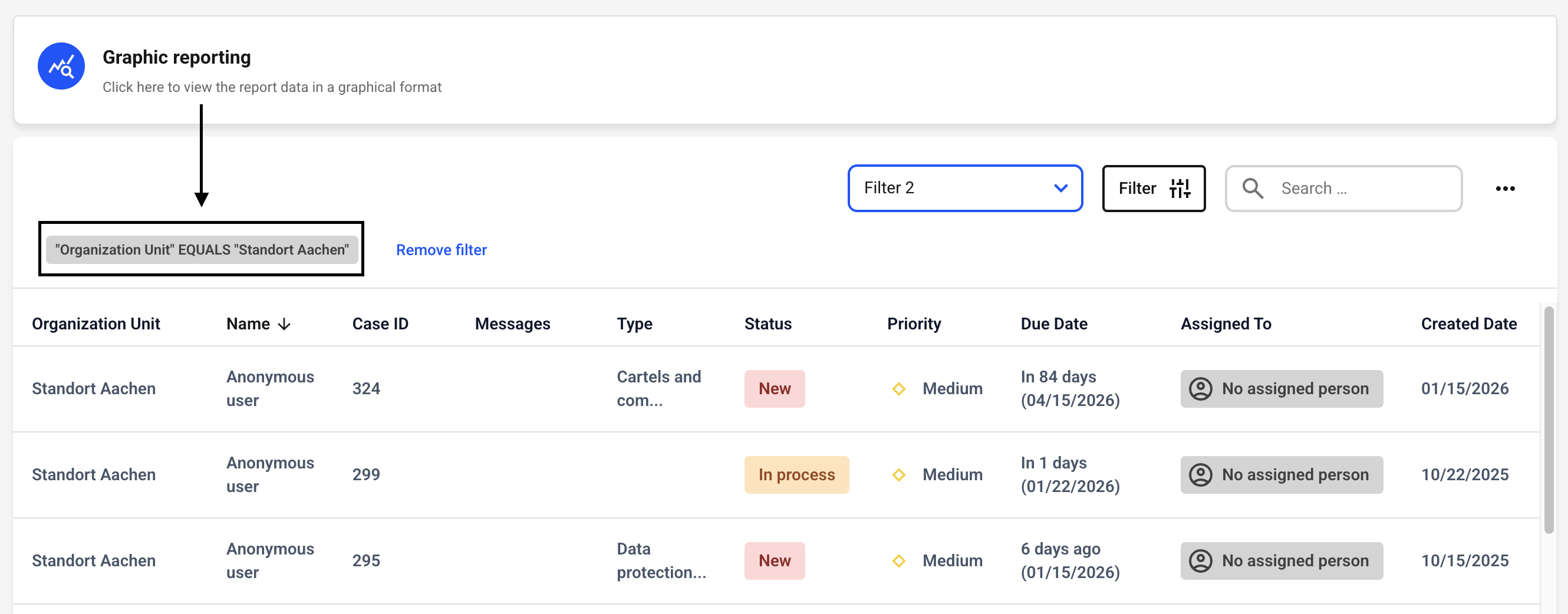 The filter has now been set. You can always view the filter conditions in the upper left corner.