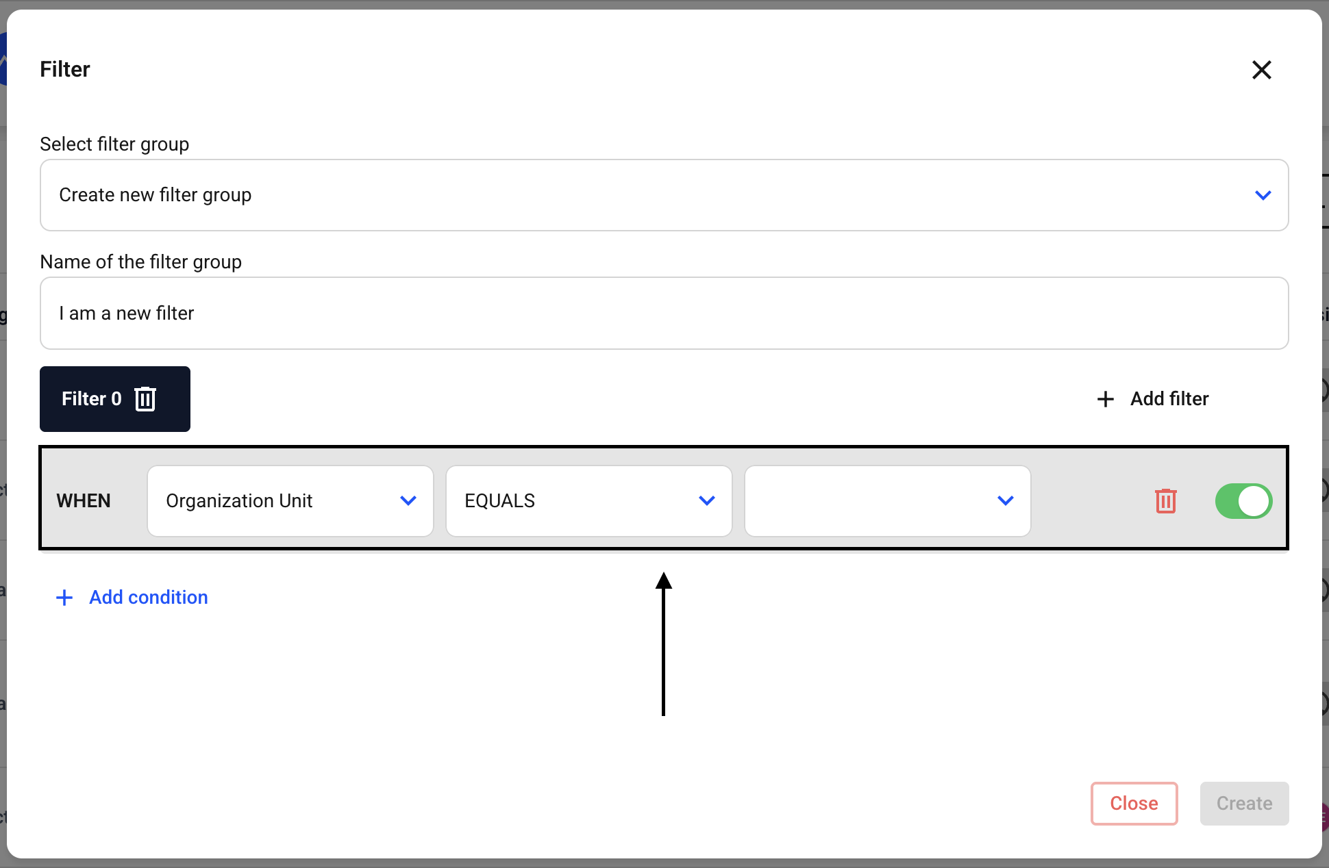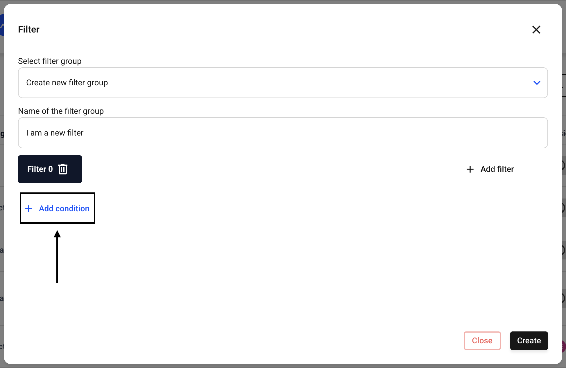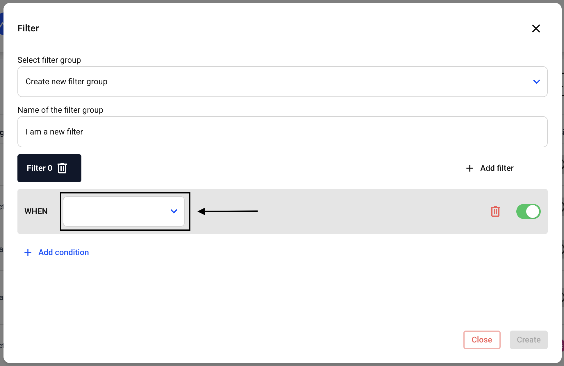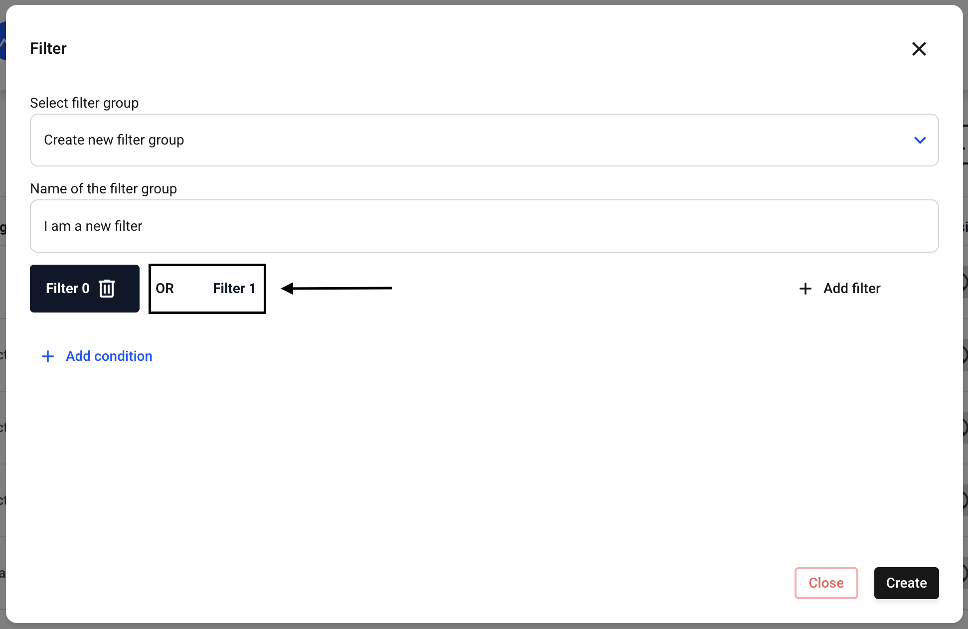 Instead of adding a condition directly to the filter, first click on Add filter.