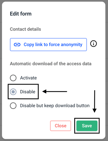 In this chapter we will explain how to disable the automatic download of access data.