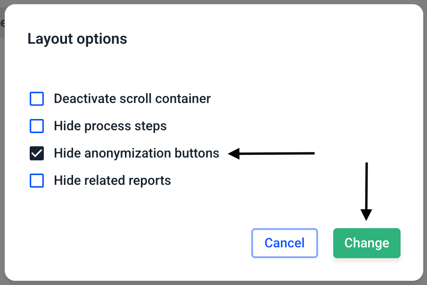 If you want to hide the anonymization buttons, check the box next to hide anonymization buttons. If you want to show the anonymization buttons, uncheck the box. Then confirm your selection by clicking Change.