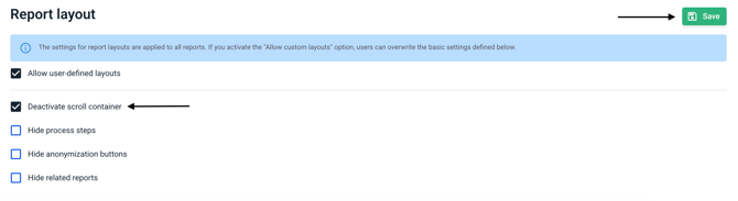There are two different ways to activate or deactivate the scroll containers in the report layout.