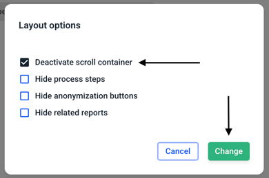 If you want to deactivate the scroll container, check the box next to deactivate scroll container. If you want to activate the scroll container, uncheck the box. Then confirm your selection by clicking Change.