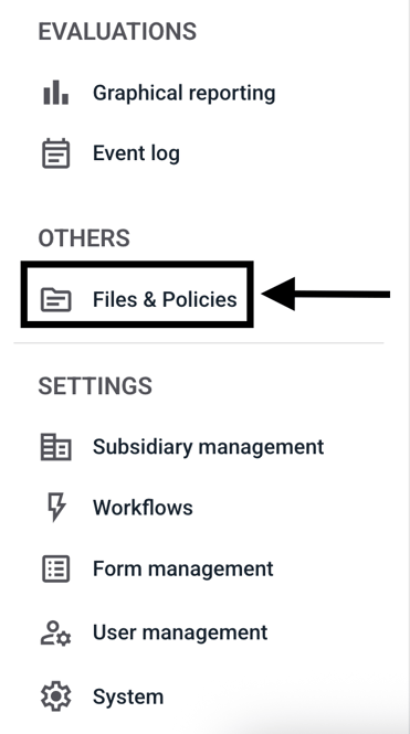 To delete a file in the Files & Policies section, first click on Files & Policies.