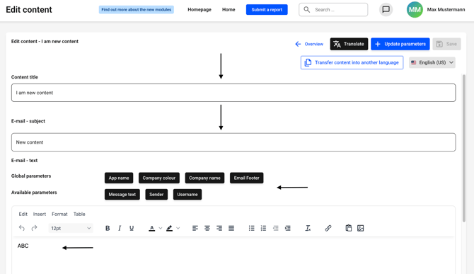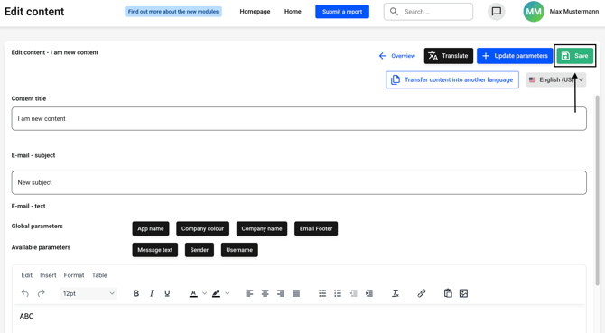 - You can transfer the content of the email into other languages so that the content always looks identical, regardless of which language is selected