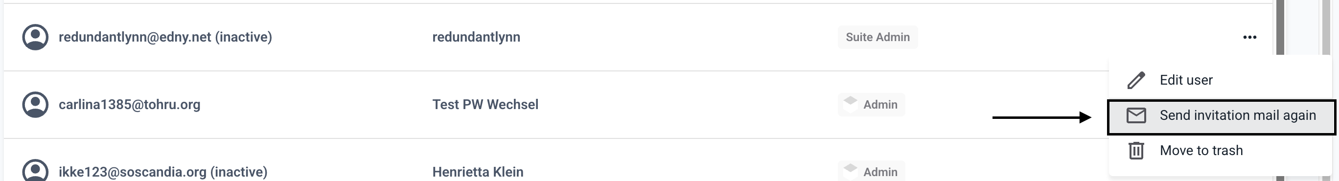 If the person who should receive the invitation again is an administrator, click on Administrators.