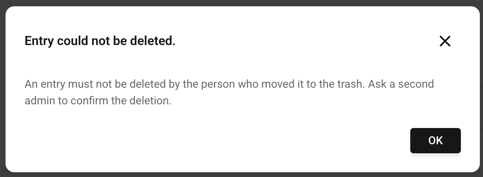 The person who submitted the deletion request cannot permanently delete the report. They will receive an error message.