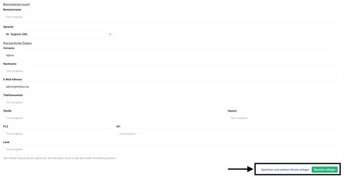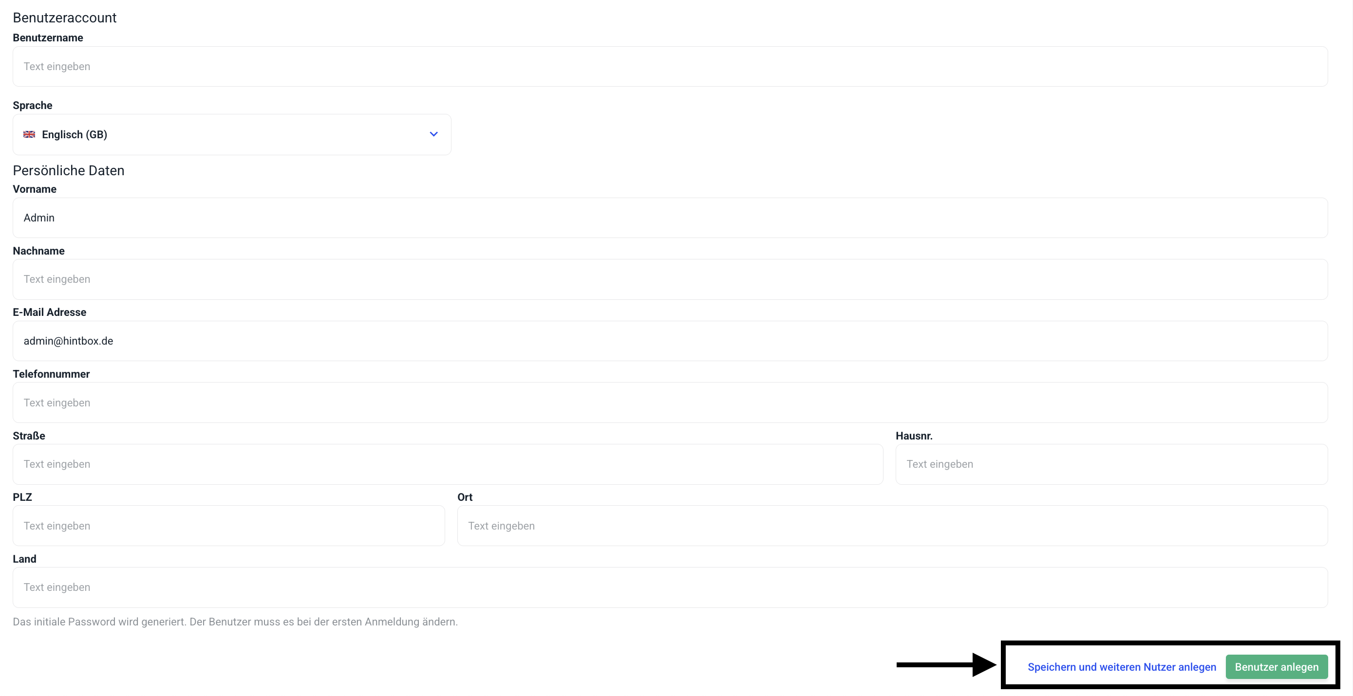 Sobald ein neuer interner Benutzer in die Hinbox eingeladen wird, wird automatisch diese E-Mailvorlage versendet.