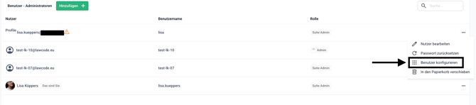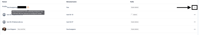 Sie erkennen, dass ein Benutzer nicht den vollen Zugriff hat, wenn ein orangenes Dreieck in der Zeile des Benutzers erscheint. Jetzt muss auf das Zahnrad geklickt werden.