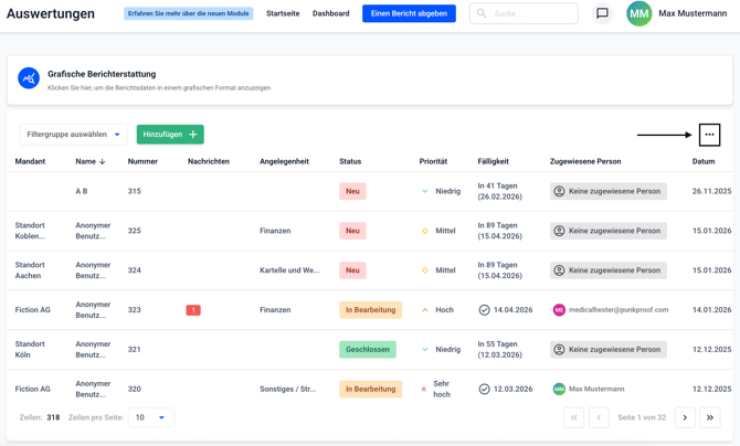Sie können entscheiden, welche Spalten in der Tabelle angezeigt werden sollen. Klicken Sie dafür auf die drei Punkte auf der rechten Seite.