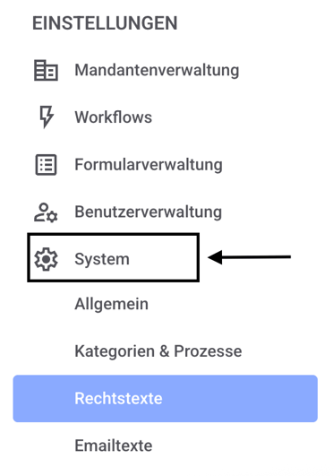 Die Rechtstexte finden Sie unter Einstellungen → System → Rechtstexte.
