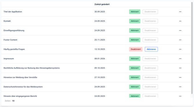 Es öffnet sich die folgende Übersicht aller Rechtstexte.