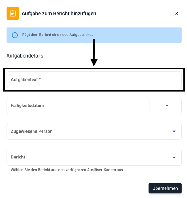 Sie können in das Feld Aufgabentext den Titel der Aufgabe eintragen. Klicken Sie dafür in das Feld Aufgabentext.