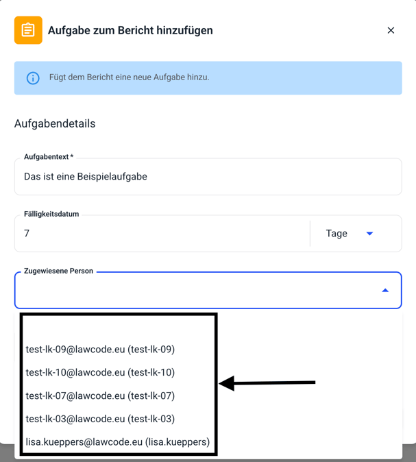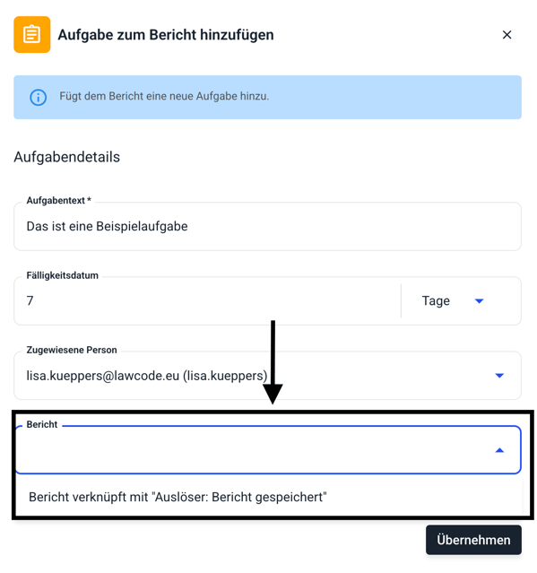 In diesem Kapitel wird erklärt, wie einem Bericht eine Aufgabe innerhalb des Workflows zugewiesen werden kann.