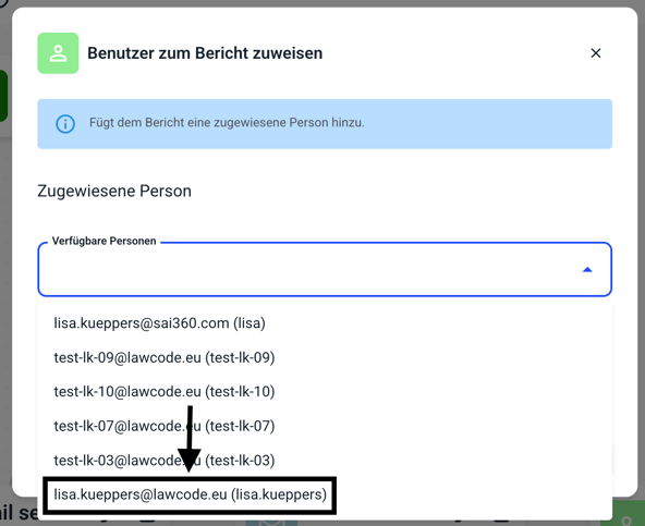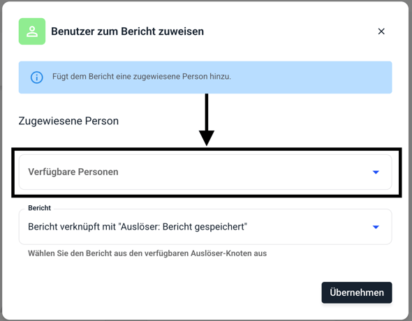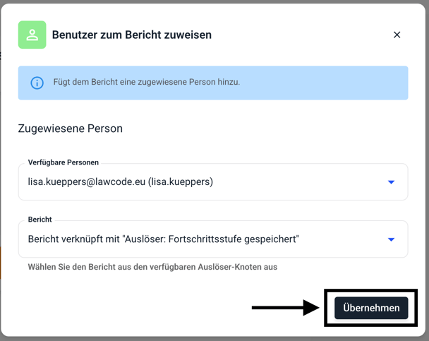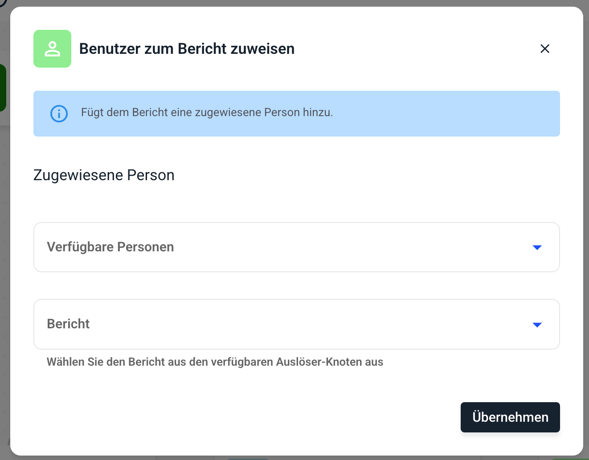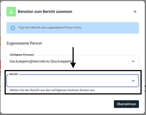 In diesem Kapitel wird erklärt, wie einem Bericht ein Benutzer innerhalb des Workflows zugewiesen werden kann.