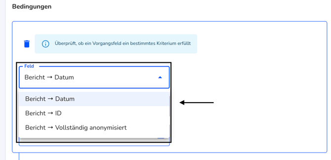 Klicken Sie zunächst auf das Drop Down Menü des Feldes und suchen Sie sich ein Kriterium aus.