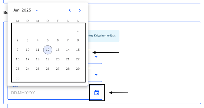 Als nächstes wird der Wert bestimmt. Dafür können Sie auf das Kalendersymbol klicken, um ein passendes Datum auszuwählen.