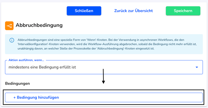 Wie bearbeite ich eine Abbruchbedingung innerhalb des Workflows?