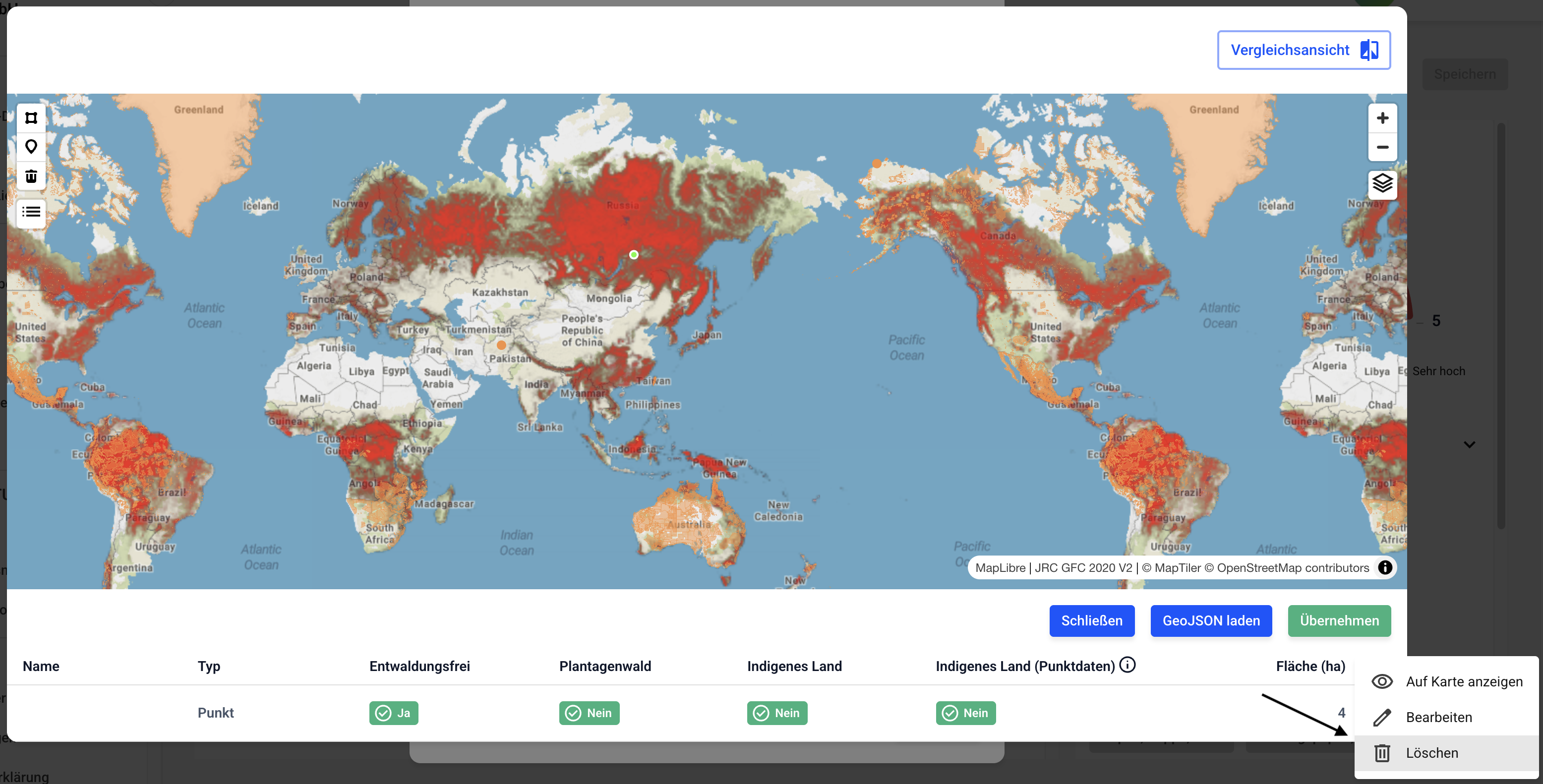 Um eine Markierung auf der Karte zu entfernen, klicken Sie zunächst auf die Eigenen Produkte oder die Lieferantenprodukte.