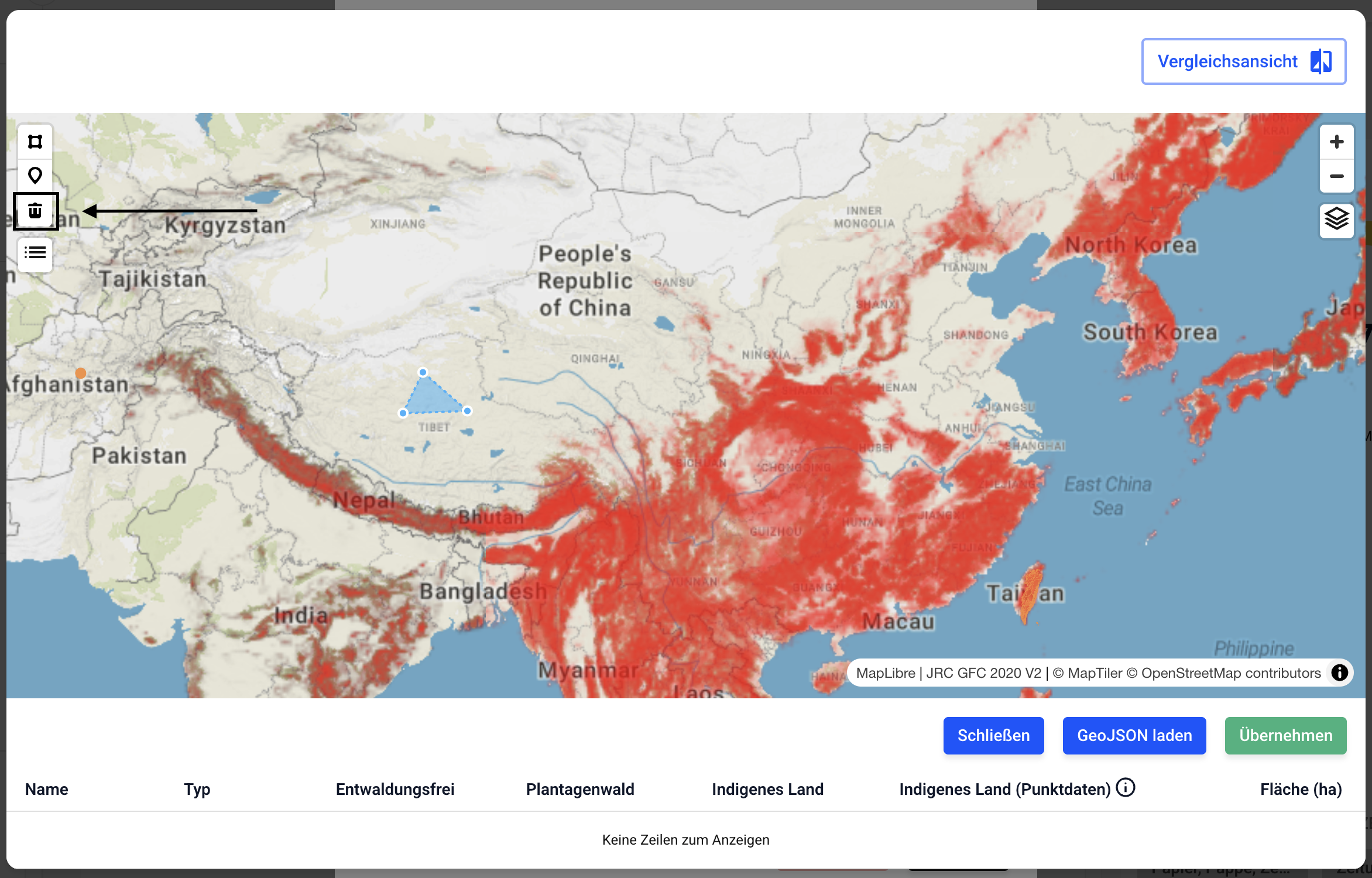 Sofern Sie ein Polygon einzeichnen und dieses noch einmal neu setzen möchten, können Sie den aktuellen Vorgang mit dem Papierkorb-Symbol abbrechen.