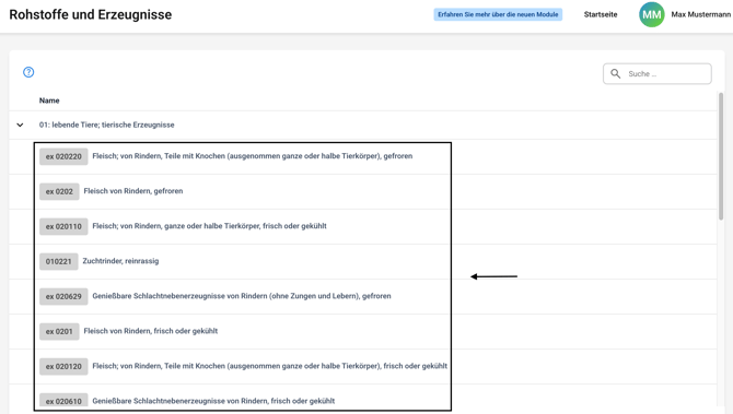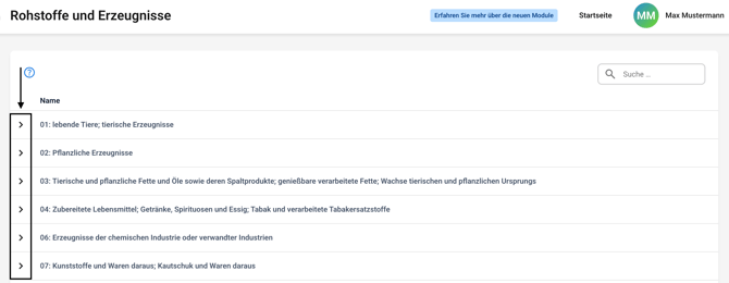 Klicken Sie zunächst im Navigationsmenü auf die Kategorie Rohstoffe.