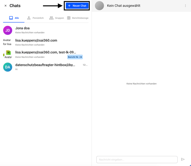 Klicken Sie auf das Chatsymbol und dann auf Neuer Chat.