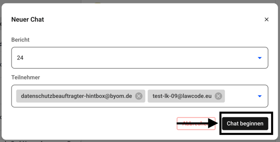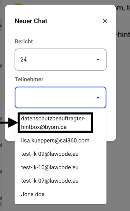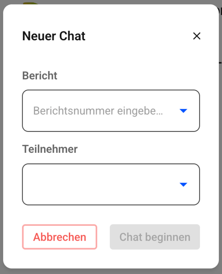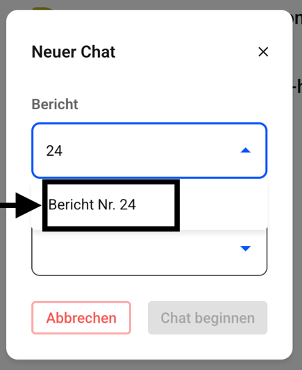 Wenn Sie einen Chat berichtsbezogen erstellen wollen, müssen Sie die Nummer des Berichtes eintragen und können dann den Bericht auswählen.