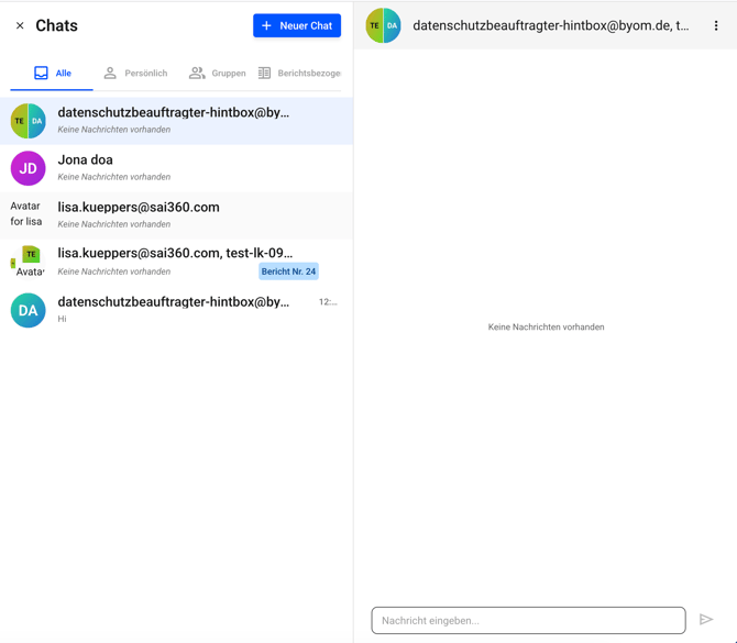 Alternativ befindet sich der Chat auch an jedem Bericht.