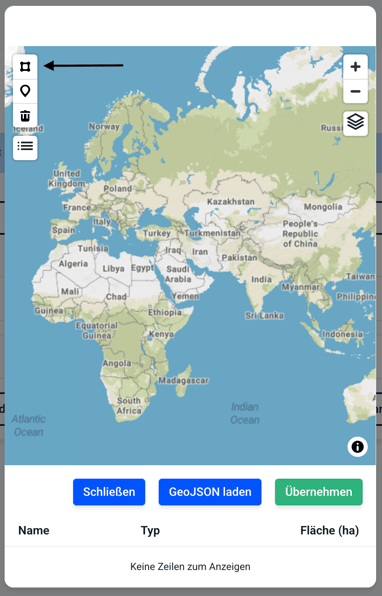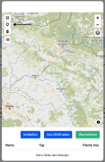 Ein Polygon können Sie durch das gekennzeichnete Symbol starten. Setzen Sie Wegpunkte auf der Karte und enden Sie bei dem letzten Punkt in Ihrem zuerst gesetzten Punkt, damit eine geschlossene Fläche entsteht.
