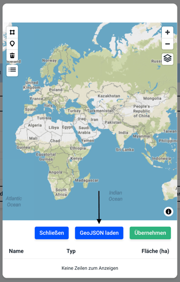 Klicken Sie auf GeoJson laden und wählen Sie eine Datei in Ihrem Dateibrowser aus.