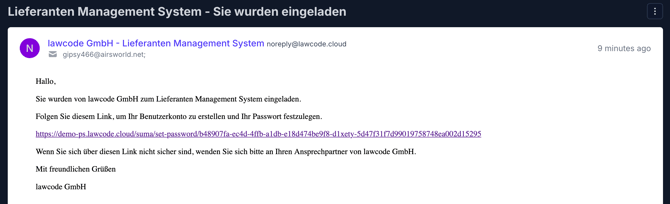 1. Zunächst erhalten Sie von Ihrem Kunden eine Einladung per E-Mail zur Nutzung der Plattform.
