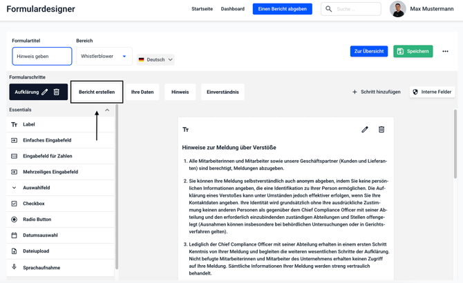 Navigieren Sie zu dem Schritt Bericht erstellen.