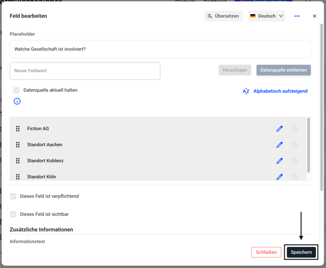 Um eine Datenquelle aktuell zu halten, klicken Sie auf die Formularverwaltung.