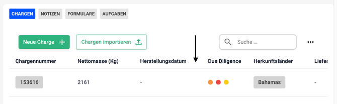 Sobald das DDS über diesen Weg eingegeben wurde, wird Ihnen dies in der Chargenübersicht des Produktes visuell dargestellt.