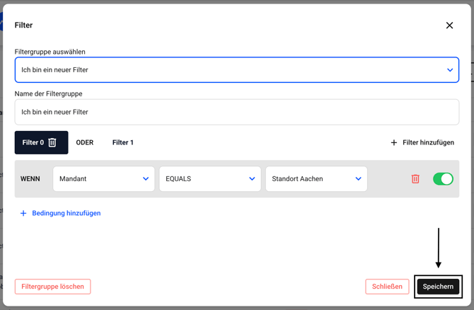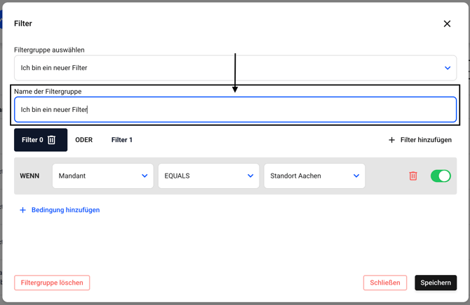 Über den Namen der Filtergruppe, können Sie den Namen des Filters anpassen.