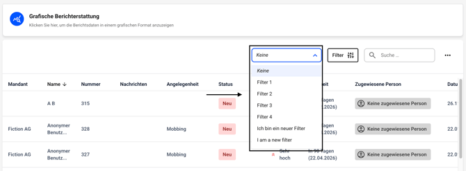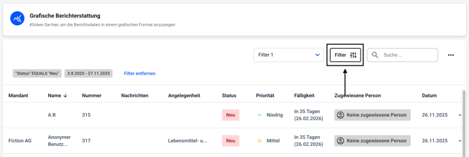 Um einen Filter zu löschen, klicken Sie auf Grafische Auswertungen.