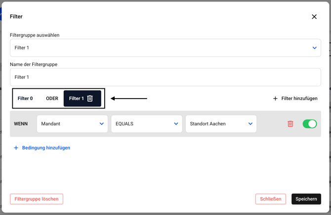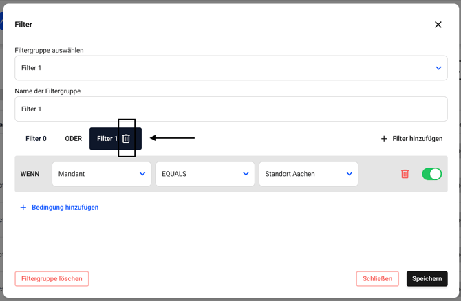 Klicken Sie jetzt auf das Papierkorbsymbol des Filters, den Sie löschen möchten.