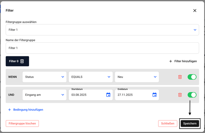 Der Filter wird sofort gelöscht. Bestätigen Sie die Änderungen nun mit dem Speichern-Button.