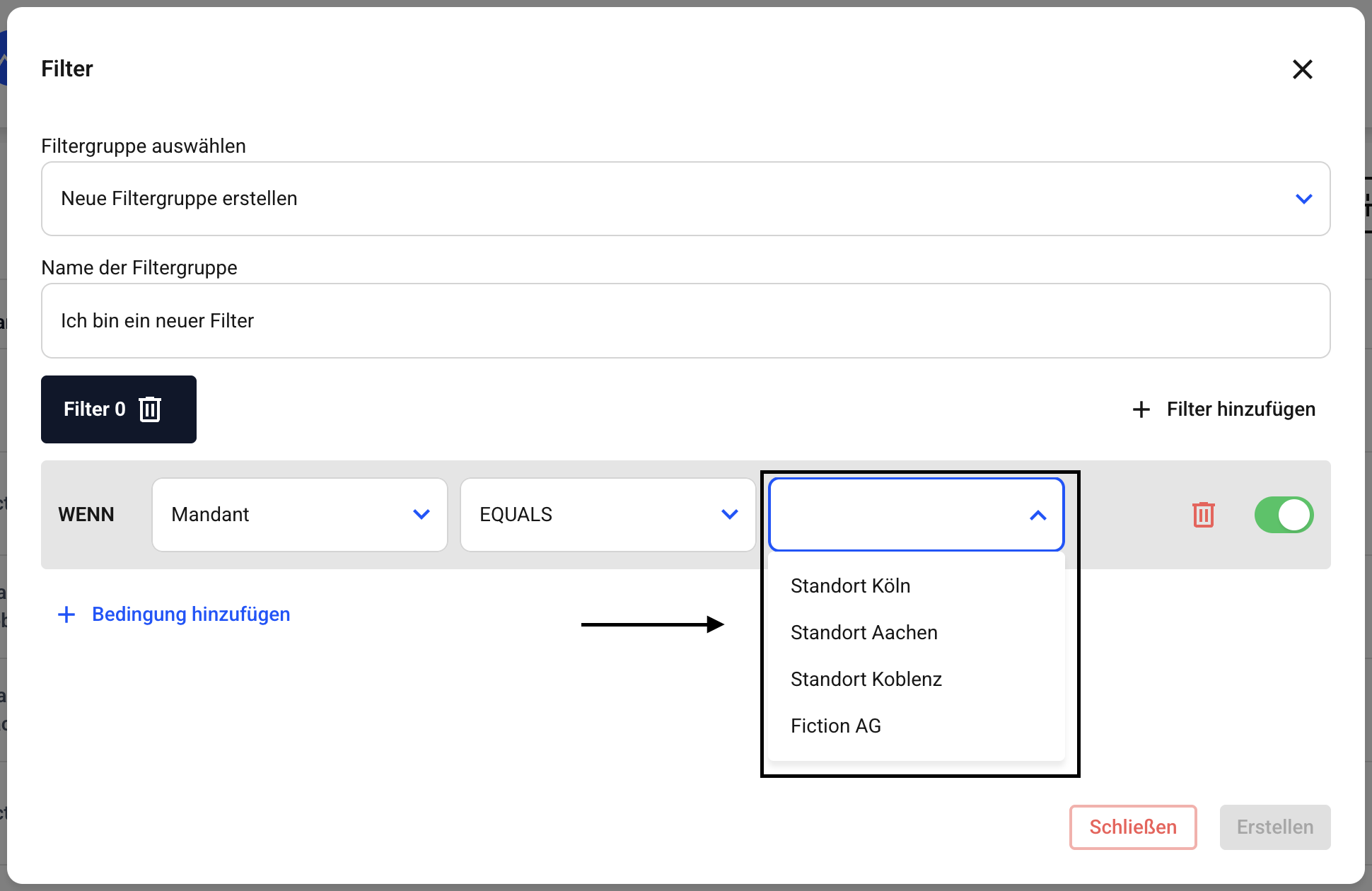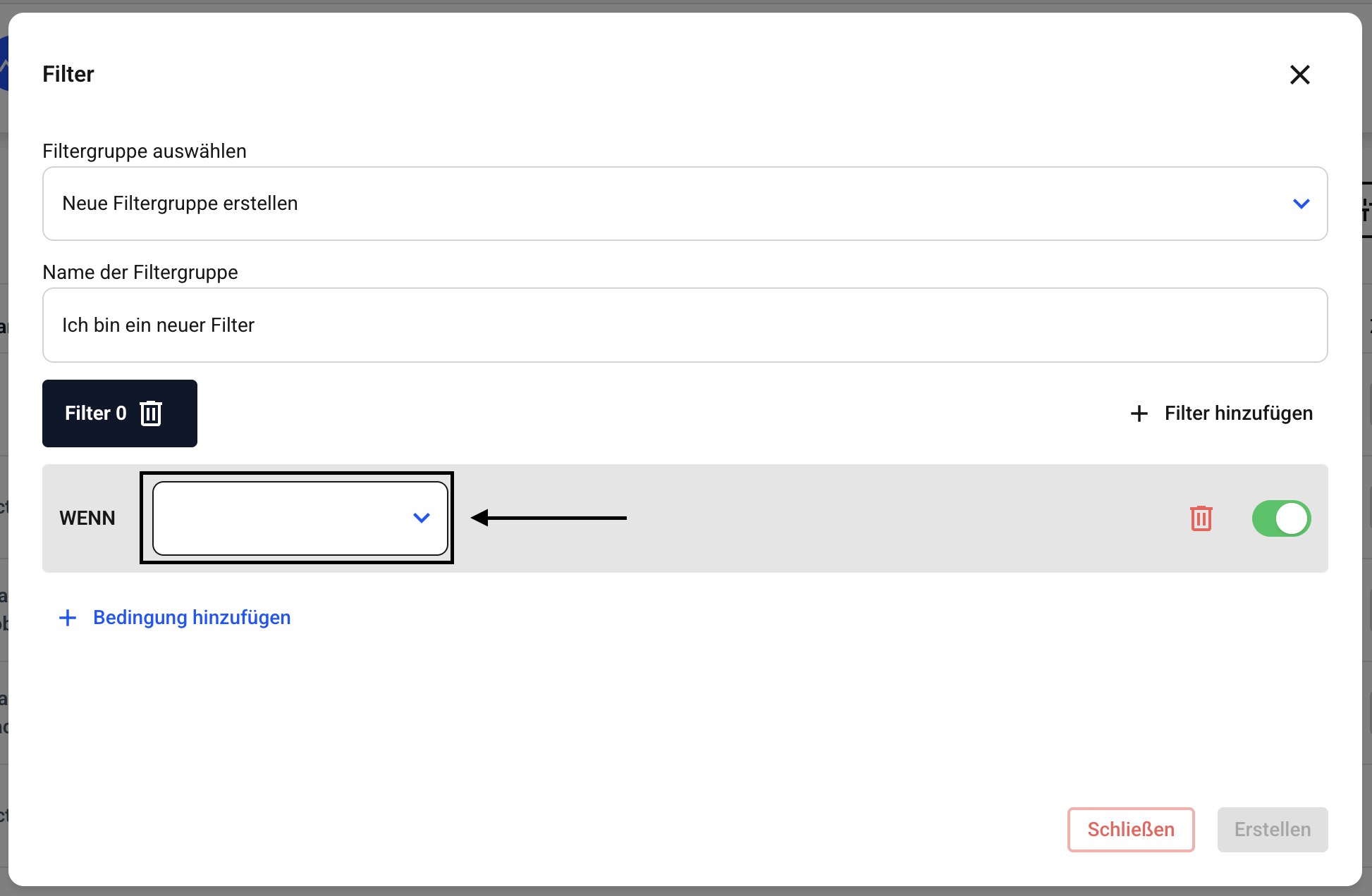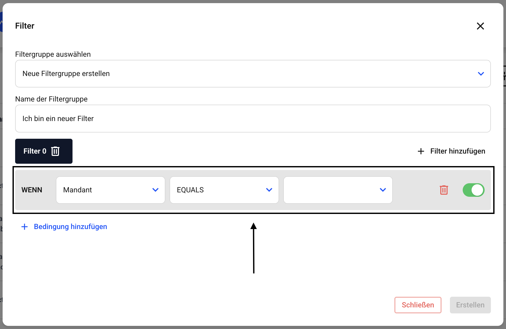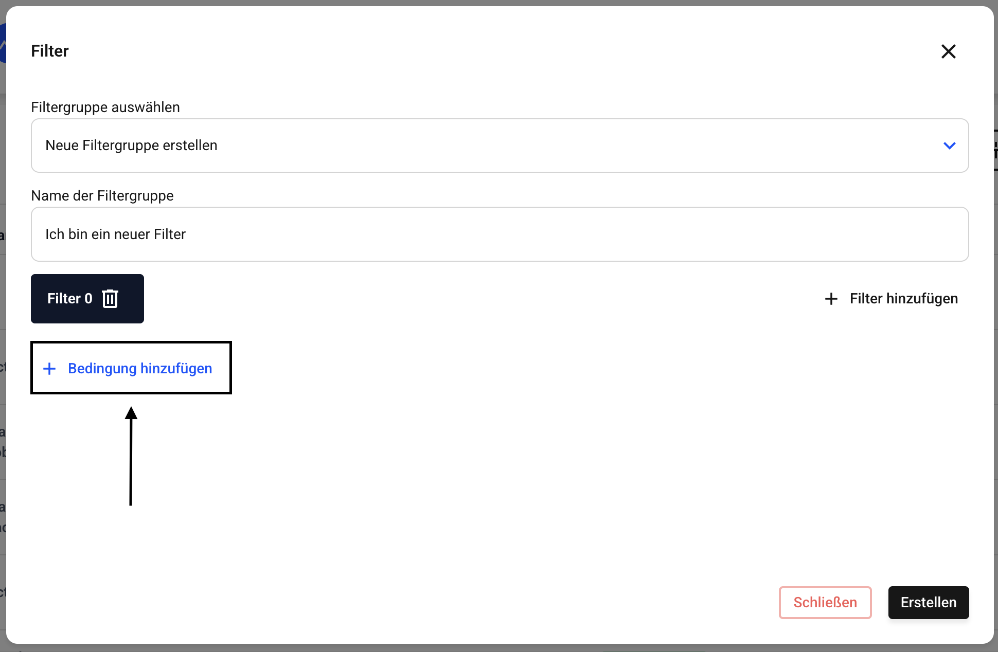 Um einen UND-Filter anzulegen, klicken Sie auf Bedingung hinzufügen.