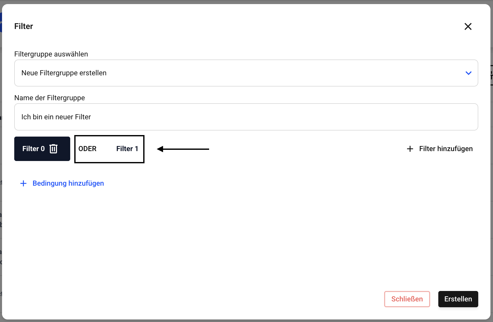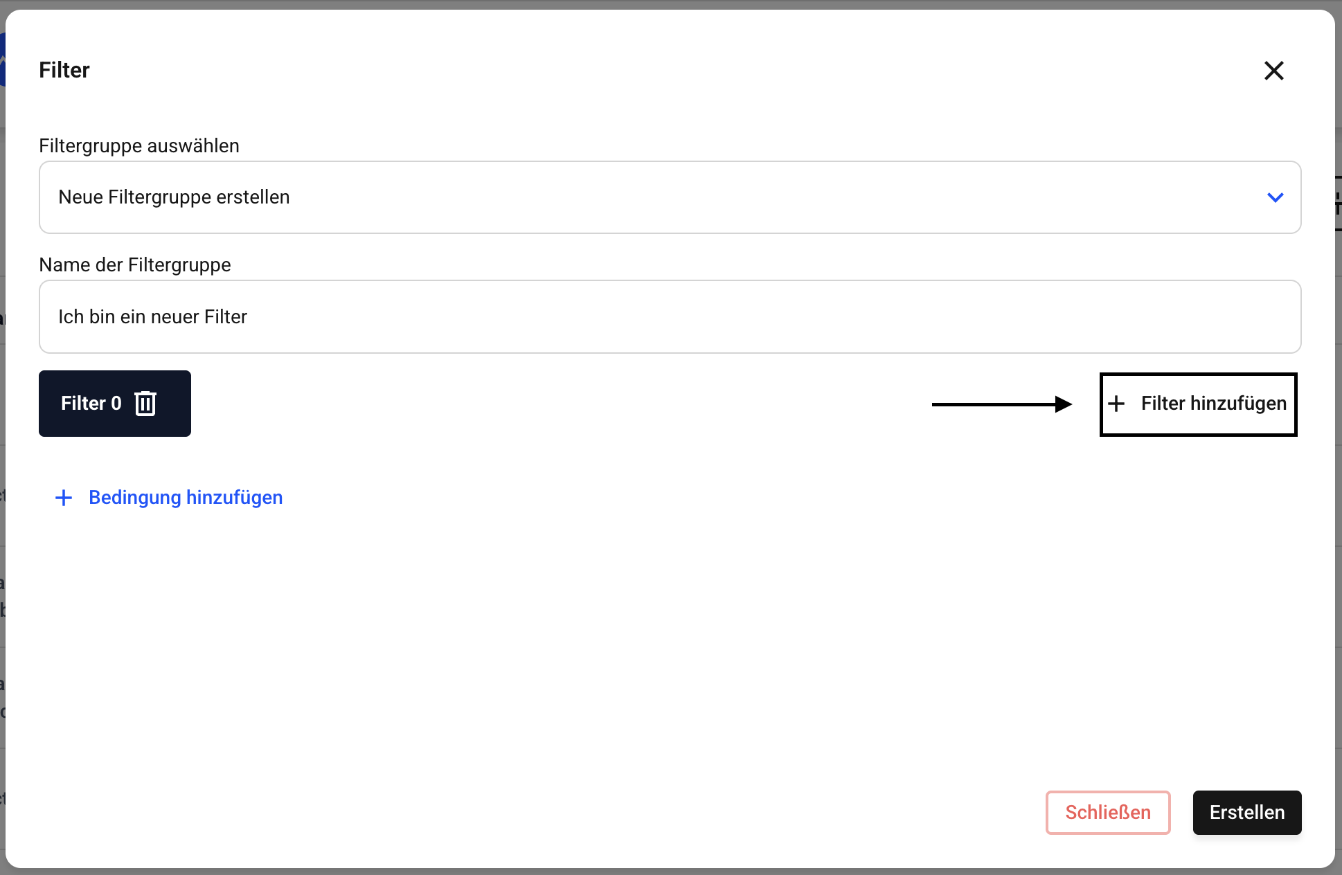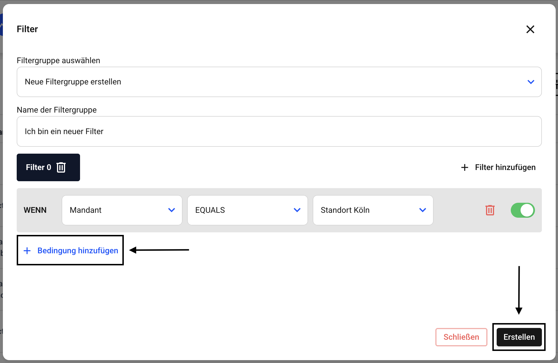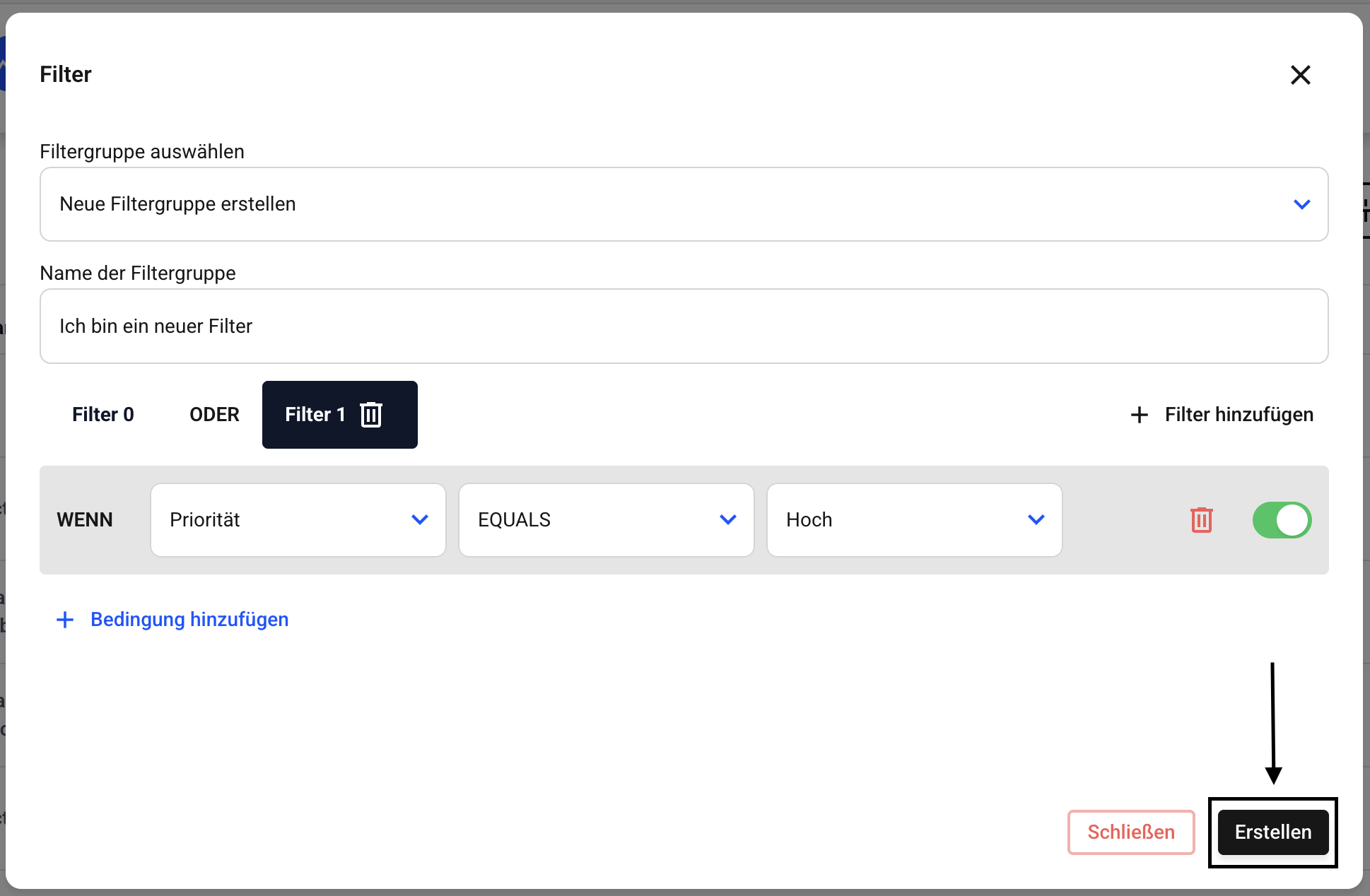 Bestätigen Sie am Ende den neuen Filter über den Erstellen-Button.