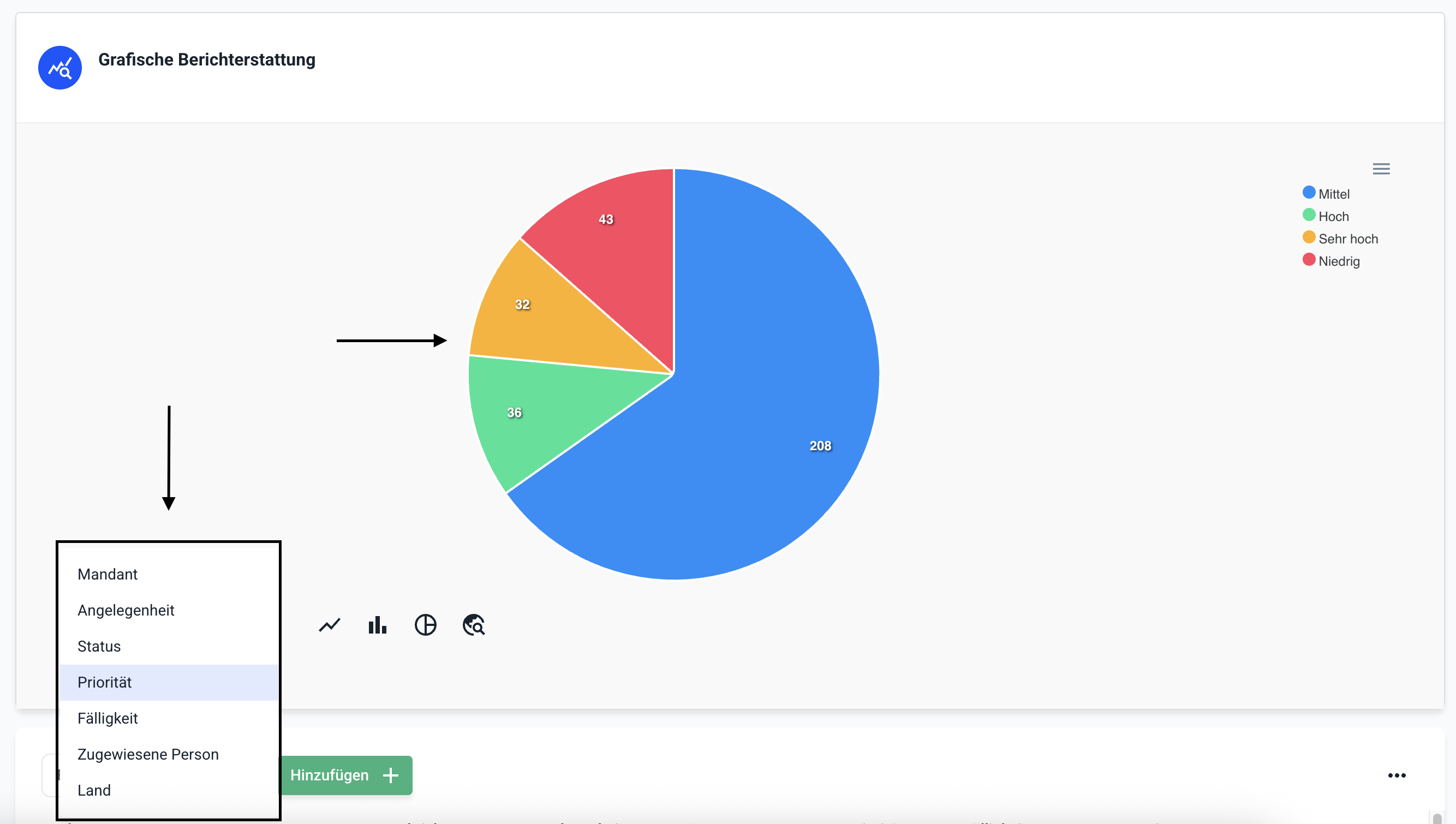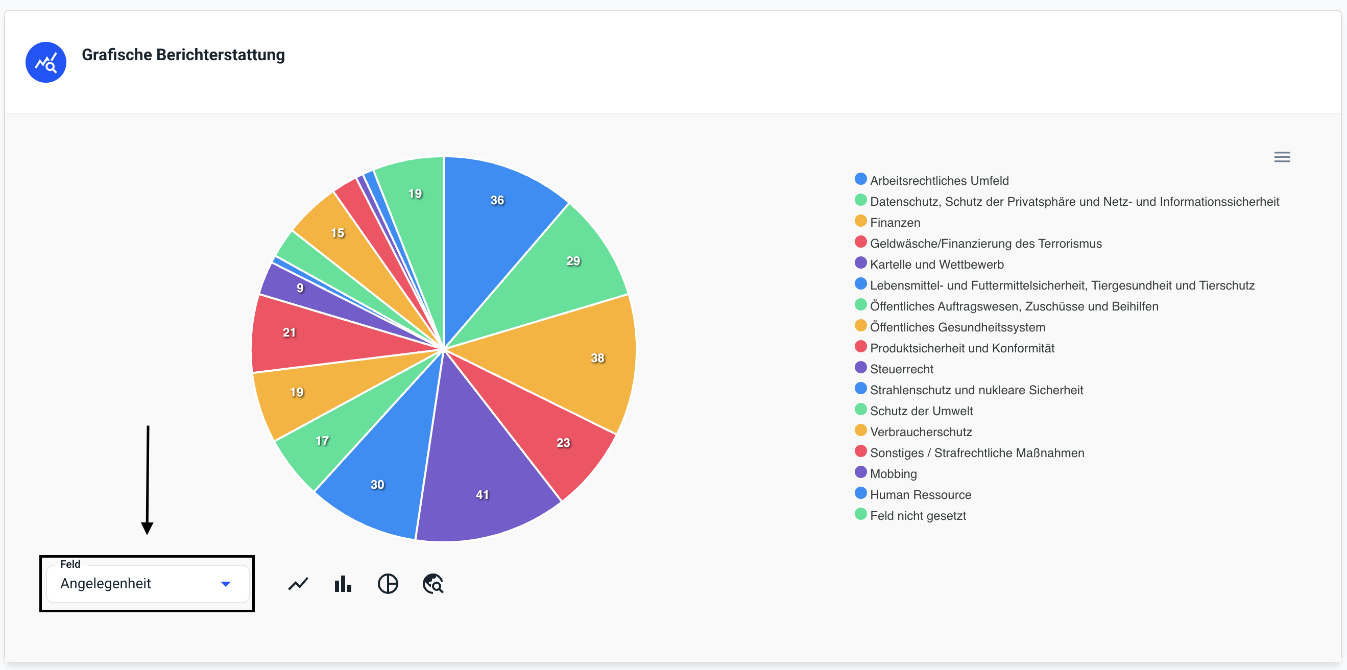 Wie kann ich bei einem Diagramm der grafischen Auswertung den Feldtypen verändern?