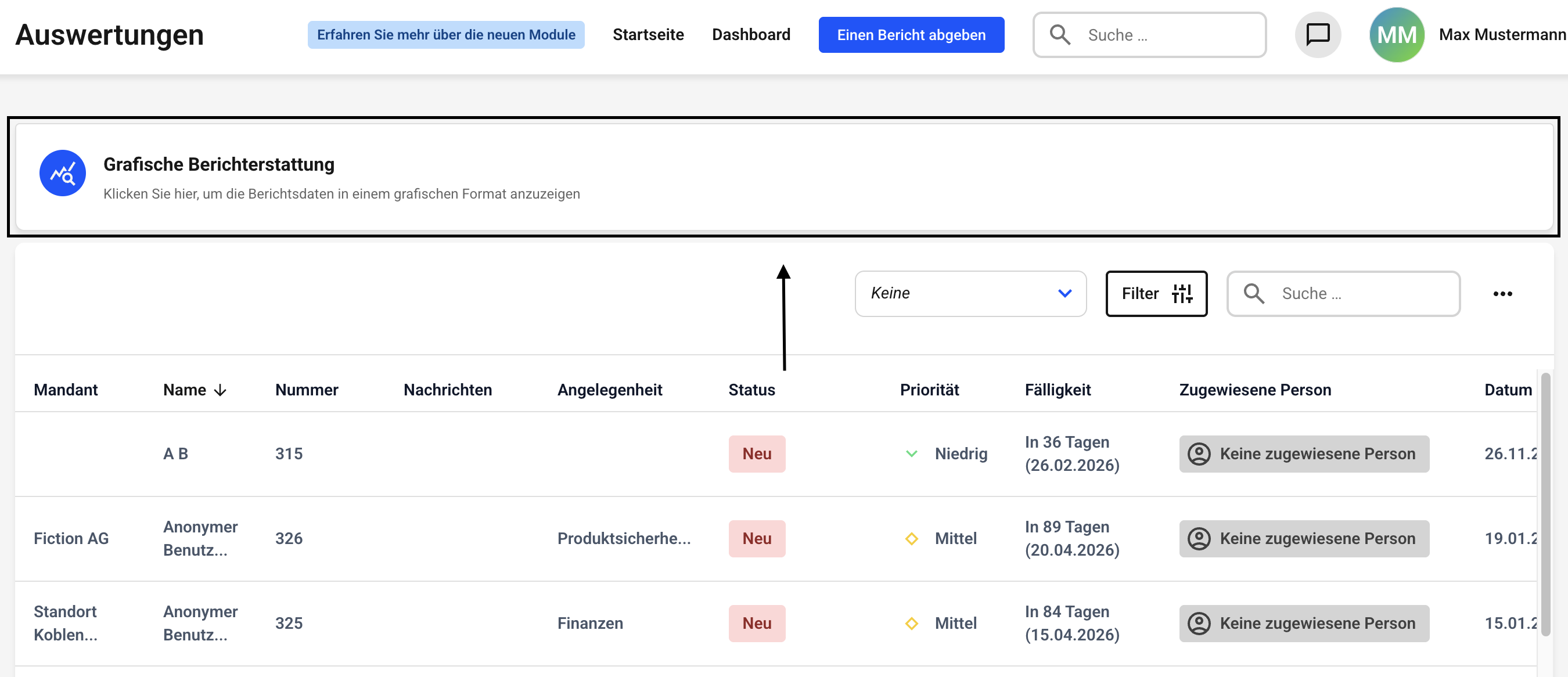 Klicken Sie zunächst auf Grafische Auswertungen.