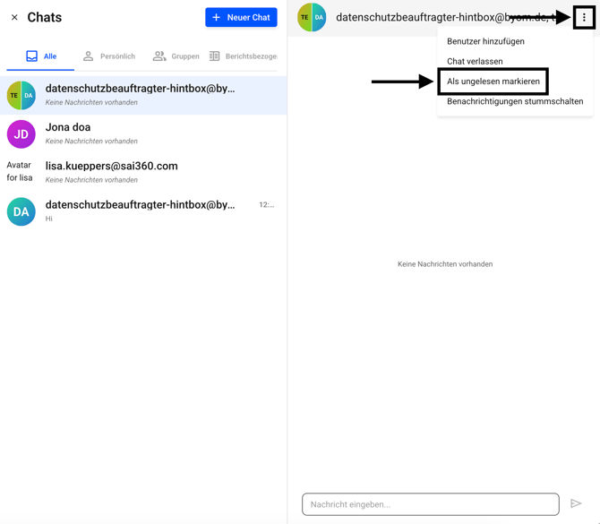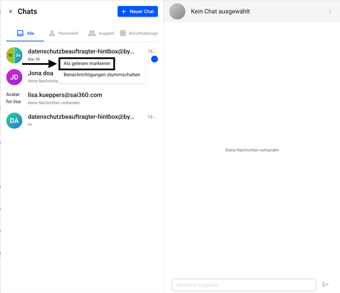 In diesem Kapitel wird Ihnen beschrieben, wie Sie einen Chat als gelesen/ungelesen markieren können.