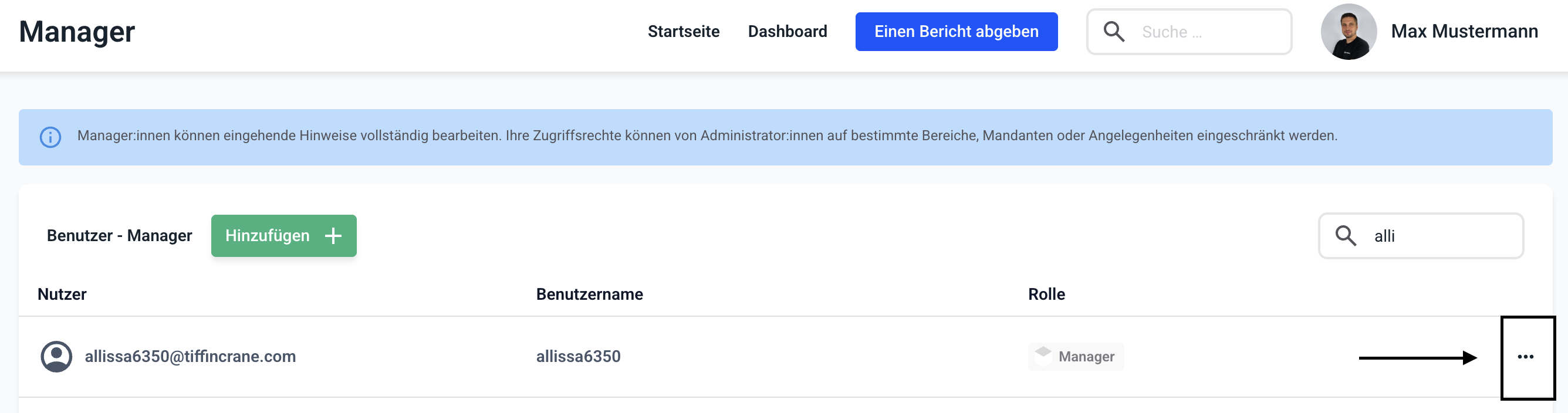 Klicken Sie bei dem Benutzer Ihrer Wahl auf die drei Punkte auf der rechten Seite.