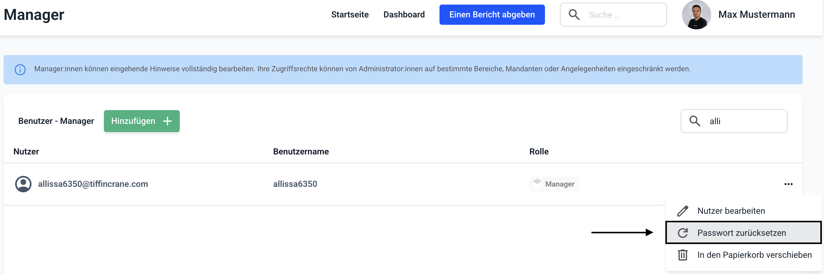 Wie kann ich das Passwort eines Benutzers zurücksetzen?