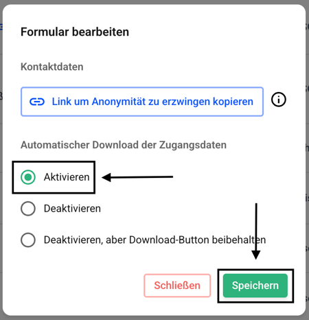 Wie kann ich den automatischen Download der Zugangsdaten aktivieren?