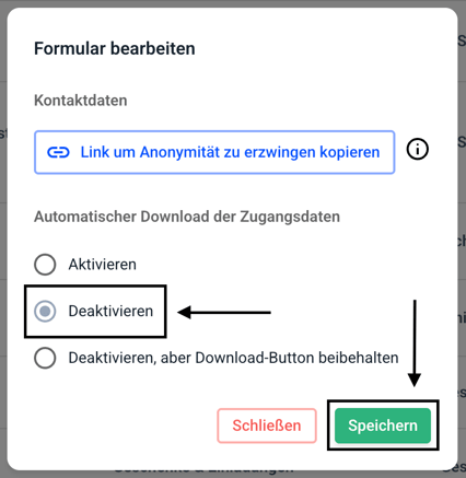 Wie kann ich den automatischen Download der Zugangsdaten deaktivieren?