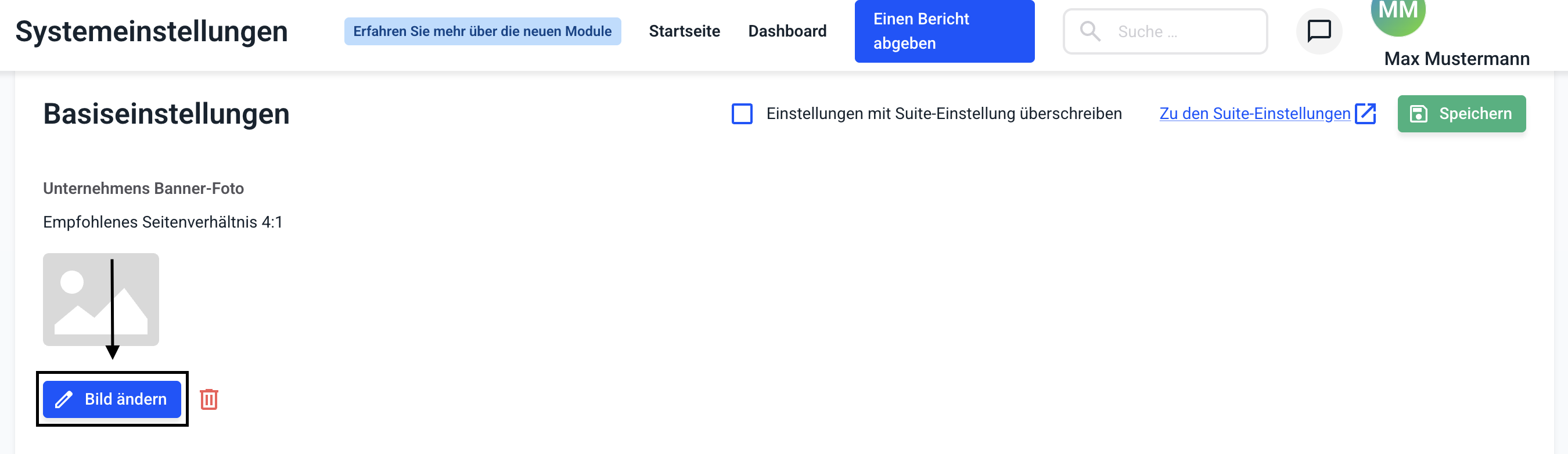 Das Unternehmens Banner-Foto kann mit einem Klick auf “Bild ändern” angepasst werden, anschließend können Sie ein Bild aussuchen und bestätigen.