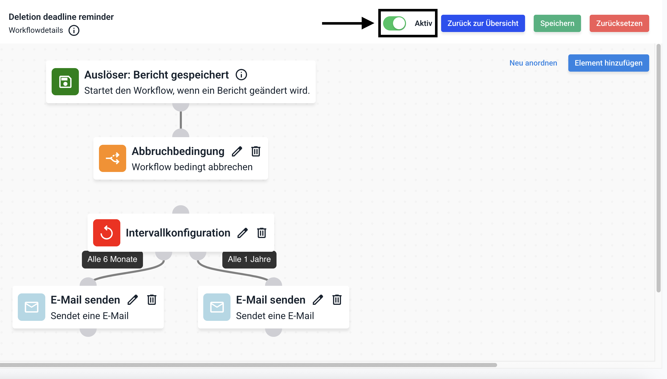 Wie kann ich den Workflow aktivieren bzw. deaktivieren?